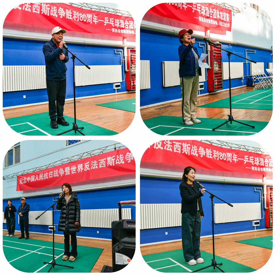 11月1日,为纪念中国人民抗日战争暨世界反法西斯战争胜利 80 周年,传承伟大抗战精神,由陕西省老教授协会主办、我校承办的乒乓球混合团体友谊赛在西北工业大学翱翔体育馆隆重举行。来自省内21所高校的300余位老教授齐聚一堂,以球会友,共忆峥嵘岁月,展现新时代老教授们的昂扬风貌。
